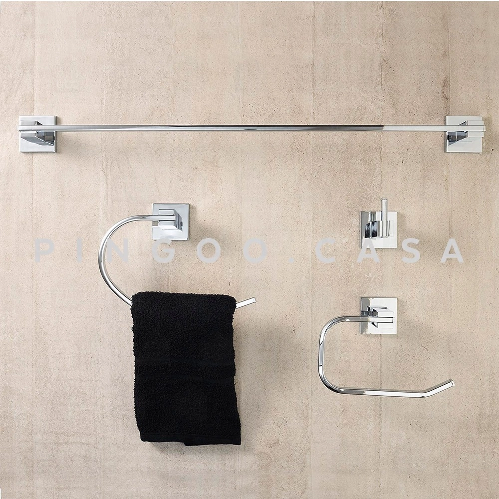Com design moderno e quadrado, o kit Acessórios Produzido em Aço Inoxidável com acabamento cromado irá dar um toque especial ao seu banheiro.
